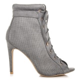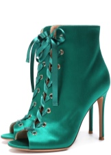 - Summer lace-up ankle boots are distinguished by a special variety of models. Many of them have an open nose, heel, perforated upper part. Shoes for the summer are often made of denim-style textiles. Denim motifs of all shades with print, rhinestones, embroidery and other decorations are very popular among young fashionistas.