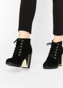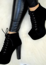 Ankle boots can be of different models and depending on the style of clothing. For girls who dress in a classic style, shoes with a low rectangular heel or a hairpin are suitable. Their nose can be slightly pointed and made of material that differs from the main one. The lacing can be decorative, then there is a zipper on the side.