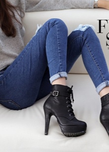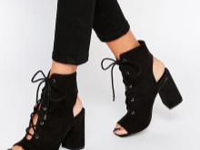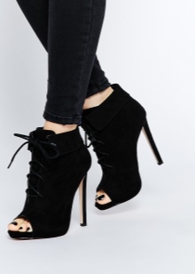 - Stiletto ankle boots give a walk of lightness and grace. It is better to take models that can be beautifully lace up. Do not combine women's ankle boots and a mini skirt. Such a choice is able to visually spoil even the most beautiful figure.