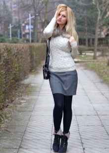 Owners of short stature will look great in shoes that have a cutout on the rise. He will make the legs visually slimmer. Visually lengthen the legs in another way. To do this, use ankle boots in beige shades and the same tights.