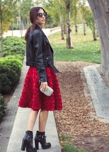 Fashionable black ankle boots look great with a red sun skirt and black tights. But it is not necessary to choose classic models and colors of ankle boots. There is a very rich palette of colors, you just need to figure out how to choose the right colors in clothes for bright shoes.