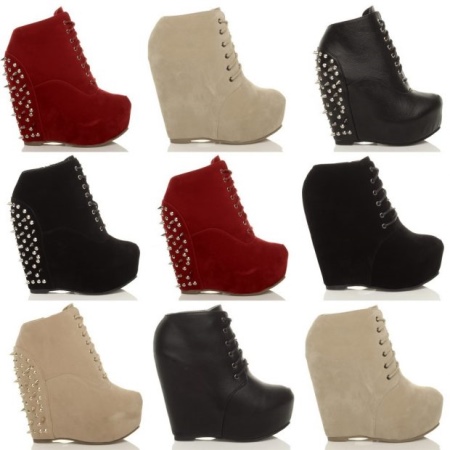 Ideal shoes with a hidden platform. Despite the fact that the heel can reach 10-12 centimeters, it is very convenient and comfortable. Summer models of romantic-style ankle boots can have perforations at the top, an open toe or heel.