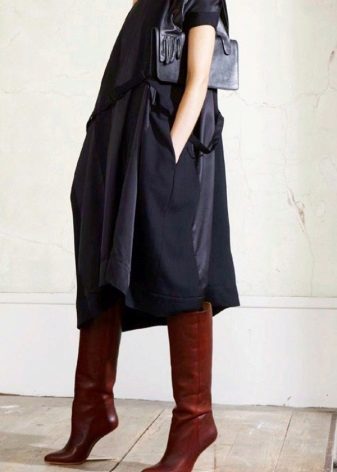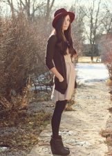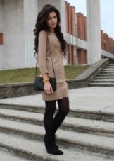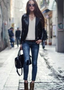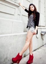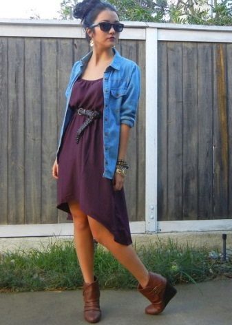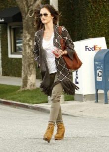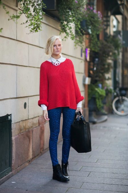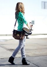 In a warmer time of the year, it is appropriate to combine ankle boots with a loose cardigan or a large knit sweater. In this case, both combinations with tight trousers or jeans, and with a full skirt of mini or midi length will be beautiful.