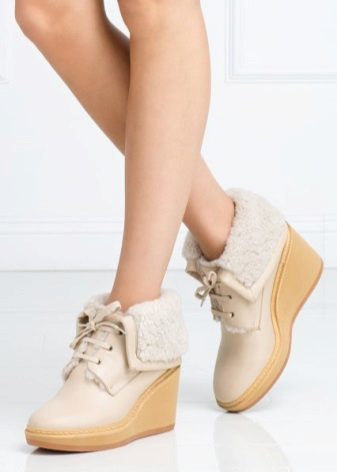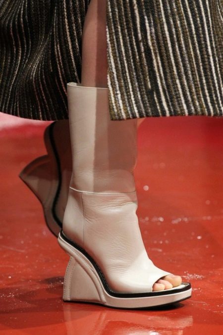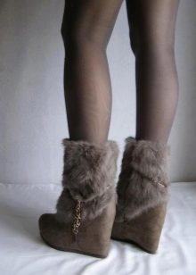 Wedge ankle boots made with fur outward, the trend is not practical, but trendy and extravagant.Perhaps soon, designers will adapt these shoes for daily wear.