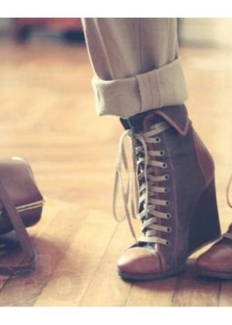 In fashion as ankle boots with a concise design wedges, and richly decorated. The trends include metal rivets and spikes, fringe made of leather or suede, trim in sheepskin or strips of fluffy natural fur. As decorative elements, designers use large tractor zippers and numerous straps, often not bearing functional purpose.