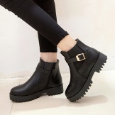 Tractor-soled ankle boots feature a wide variety of décor. This season, at the peak of popularity, massive belts with metal buckles. Ankle boots with contrasting color elements do not go out of fashion either. Designers create contrast using white laces, a white sole or white stitching in the decor of black shoes.