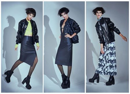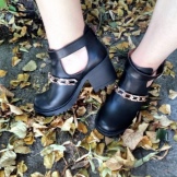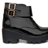 - Black patent leather ankle boots with contrasting white soles complement the bold grunge look. When combined with a pleated midi skirt, they will create an informal look.