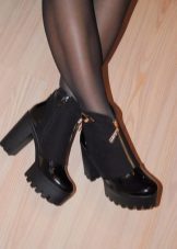 - with a zipper. For ankle boots on tractor soles, a coarse metallized zipper is often chosen to maintain the right balance of proportions.