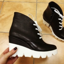 They help increase growth and stretch the silhouette and, unlike ankle boots with thin heels or stiletto heels, do not create a serious load on the legs. In them you can go for a walk in the park, and for long shopping with friends.