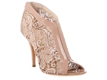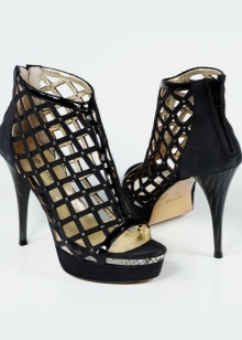 The combination of leather models with inserts of the finest lace looks incredibly gentle. Laconic couples with an open toe, thanks to lace motifs, acquire elegance and premium status. A golden ring, worn on a thin hairpin, becomes the highlight of the heel.