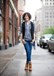 To give harmony to the legs, it is necessary to purchase ankle boots that match the trousers or tights. Beige and body tights with these pairs do not combine, it is better to exclude such a duet from the ensemble.