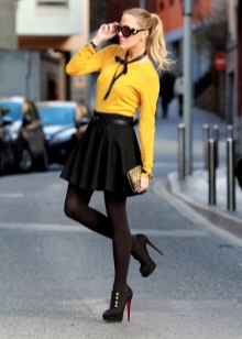 When composing a fashionable bow, it is necessary to take into account the length of the top: pairs with high heels are ideally combined with short dresses and skirts of any styles. However, the maximum length with them will look out of place.
