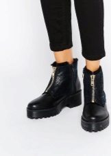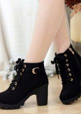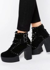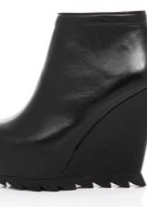 Wedge heel - A more elegant look of the platform, which should not be deprived of love. It's great when it is painted in the same shade as the ankle boots themselves. In this case, the effect of a long leg is created. It is feminine and stylish, in addition, the wedge heel is much more comfortable than the heel.