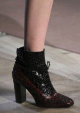 Erdem showed a pretty cute shoe model that is perfect for dresses and skirts. The combination of black and scarlet is the hit of the upcoming season. Also worth noting is the edging of reptile skin, which adds seductiveness to the ankle boots.