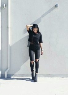 - The classic set of a black jacket and tight cropped trousers looks reserved, but a little boring. You can dilute this look with trendy screaming crimson ankle boots. Shiny skin, a wide heel - all this is just in trend. Take a small handbag on a golden chain, and you are a star!