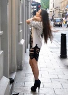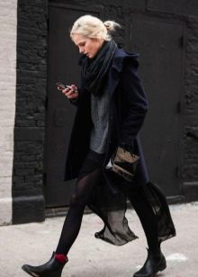In the cold season, you can also wear ankle boots. However, they should be more impressive and sustainable. Cast your vote in favor of the classic black or gray model, whose height reaches the ankle, and you will not lose. A brown shoe with a front closure also looks very elegant and elegant. You can open the zipper, which will make the leg visually longer.