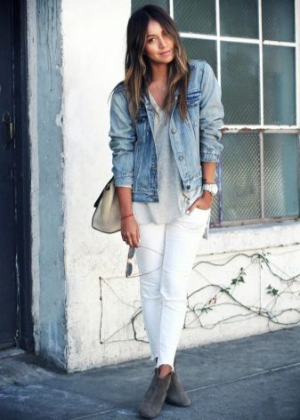 - Pastel colors are a squeak of the upcoming season. A hat with wide brim of milk color complements a loose sweater of the same color. Ripped jeans in light blue tones with slits once again remind of freedom. Light suede ankle boots fit perfectly into the tandem created. And the accessory on a long chain makes the outfit solid.