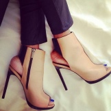 Ankle boots can be exclusively with an open heel or (most often) with an open toe and heel. Such models are only suitable for the summer season. The foot remains as open as possible, and the shoes are held on the rise and ankle.