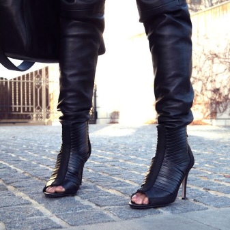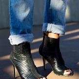 Sexy open shoes perfectly complement outfits with tight-fitting or skinny jeans. Lovers of a free cut can bend the lower part of the legs to open the upper part of the shoe.