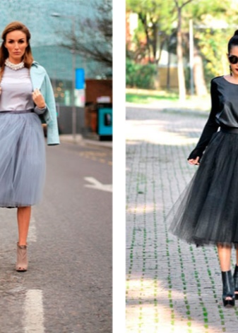The combination of open models and the length of the skirt is not suitable for all ladies. Such an ensemble is better for owners of high growth. It is recommended to choose ankle boots with high heels and stiletto heels. Such a kit will not work for girls with small stature.
