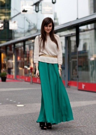 Open shoes look very impressive and coquettish in combination with a short skirt. The cut of the product can be completely different.Stiletto shoes harmonize with straight or tight-fitting skirts. Models with wedges perfectly complement outfits with a flared or wide skirt.