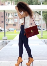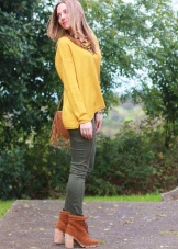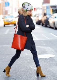 Orange is a decent party for ginger ankle boots. With this combination, the brightness of the shoe is muffled by the use of more expressive elements. You can choose things with a large orange print, pick up a bag or scarf. There can be many options, but no one forbids experimenting.