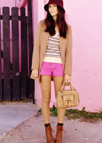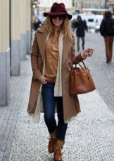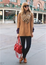 Brown and red are similar to each other, so such combinations should be considered first. You can use any shade of brown. Look good with red ankle boots and brown cardigans. Such clothes may be plain, but the advantage should be given to a large cage. Brown can also be embodied in accessories.
