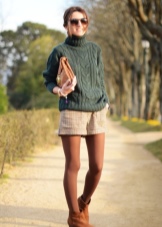 To create a playful and casual look, you can pick up a black turtleneck, vibrant shorts or a short skirt, and black tight tights.