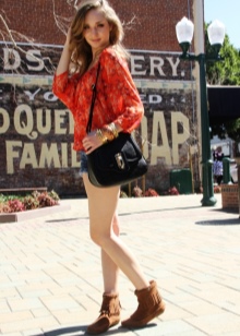 Clothing with prints can safely make a company of red ankle boots. Dresses with prints in this case are the most successful option, their length must be above the knee.