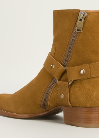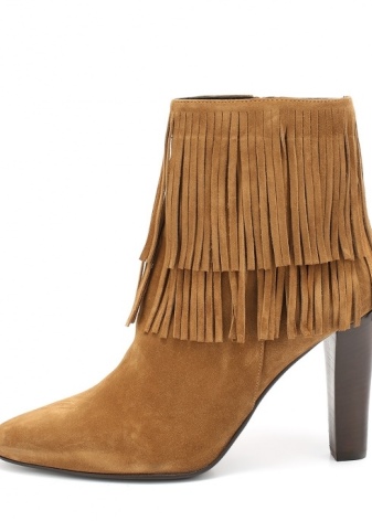 - Saint Lauren booties are decorated with fringe or straps.