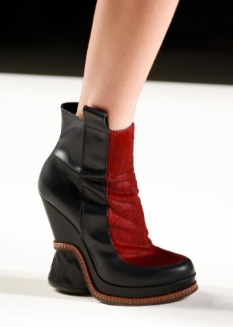 - If low-speed models are not an option for you, then it is worth looking for red ankle boots with a wide heel or with a wedge. Still, in such shoes it will be more comfortable to move around the city.