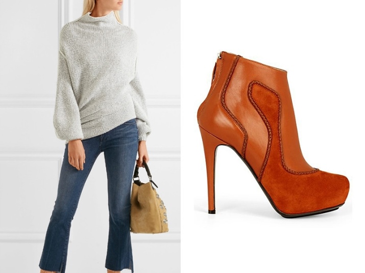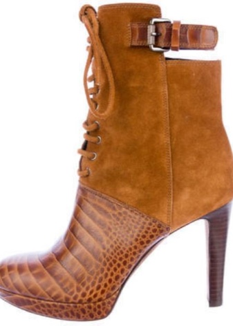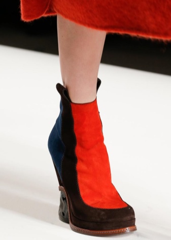 - Suede ankle boots often have leather or knit inserts. Similar models are present in the collections of Vera Wang and Boss.