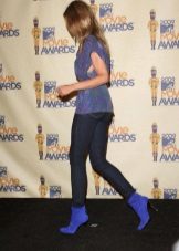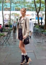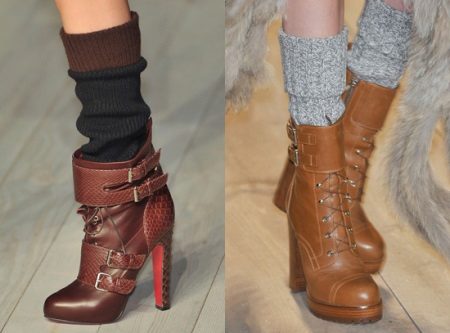 One of the new trends is putting on socks under the boots for leggings. Such images usually look cute and somewhat unusual.Wearing socks with ankle boots is also permissible under a skirt, but only under a very short one. Socks for such images must be chosen as neutral as possible.