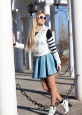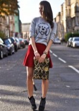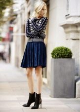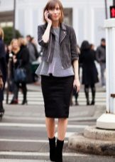 Ankle boots must be worn with skirts, but not with all. An ideal image can be created on the basis of a pencil skirt. But wide or long models with such shoes are strictly forbidden to combine. Low heel ankle boots can make legs fuller and shorter. This unpleasant effect is further exacerbated by the skirt. Slender thin people can use this disadvantage to their advantage. Ankle boots with a wedge will look better with a skirt. The length of the skirt is reduced in accordance with the increase in the height of the ankle boots, in any case, it should not cover the knees so that the legs do not seem shorter. The combination of ankle boots and a skirt lacks only dense dark matte tights.