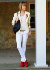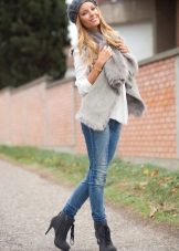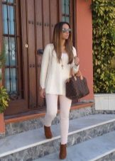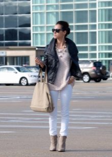 White ankle boots should not stand out and serve as a separate element of the image. With such shoes, romantic images are always obtained that are most suitable for young girls. White ankle boots require a selection of clothes in calm pastel shades. With such shoes you can wear tight jeans, skinny classic pants, straight skirts and tight tights.If there is fur in the ankle boots, then the outer clothing should be made of fur or have fur trim.