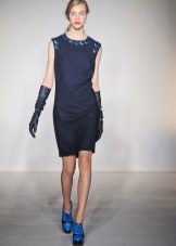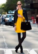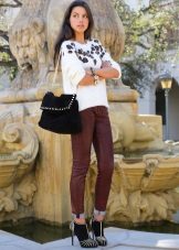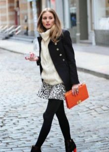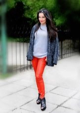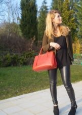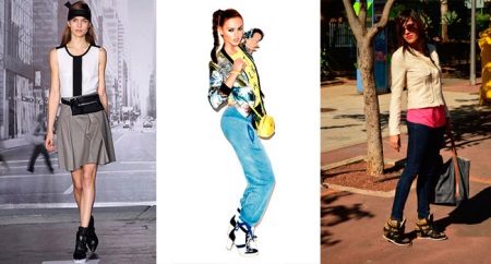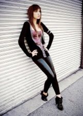 The presence of platform shoes or wedges in shoes requires the selection of a fitted dress that will not cover your knees. One option is leather leggings, skinny or jeggings. You can complement one of these images with an elongated blouse or sweater. Particularly courageous persons include such ankle boots in evening looks.