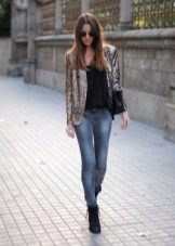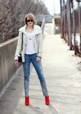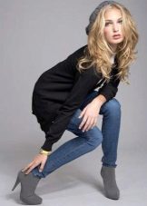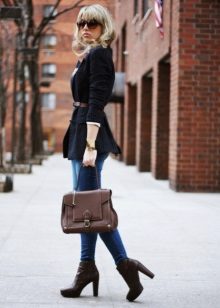In general, with jeans it is permissible to wear ankle boots in a different style. If coarser shoes are chosen, the image will turn out to be brutal and bold. Ankle boots with stiletto heels will add romance and a touch of classics to the image.