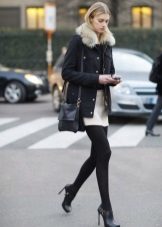 Black ankle boots will create a balanced look with a black jacket or dress. Tights should be chosen black and by no means colored.