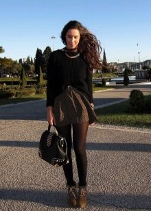 We could not afford to ignore the combination of ankle boots and leggings.as such clothing is rather controversial. With this combination, it is difficult not to cross the line that separates acceptable images from tasteless ones. Leggings can serve as sportswear in which it will be convenient to train, and full-fledged trousers for city walks. The most harmonious leggings look with tunics, long shirts, sweaters, t-shirts. If you choose ankle boots for such clothes, then these definitely should not be options with pins, since such an image will turn out to be defiant, vulgar and definitely tasteless. And all other options for ankle boots can be worn with leggings.