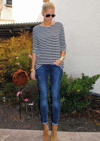 If you have doubts about the combination of your favorite ankle boots, and the formation of the image causes problems, then you can safely choose any jeans: skinny, straight, skinny, boyfriends or riding breeches with cuffs or elastic bands.