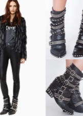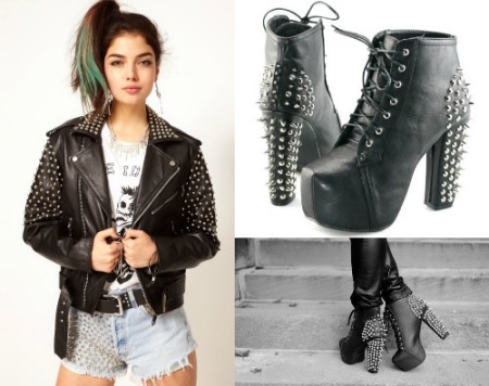 Extravagant studded ankle boots are loose-fitting shoes that best suit the rocker style. But if you make the outfit correctly, you can look feminine and elegant, despite the presence of a metal decor.