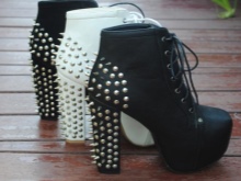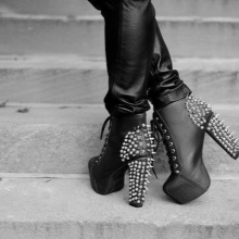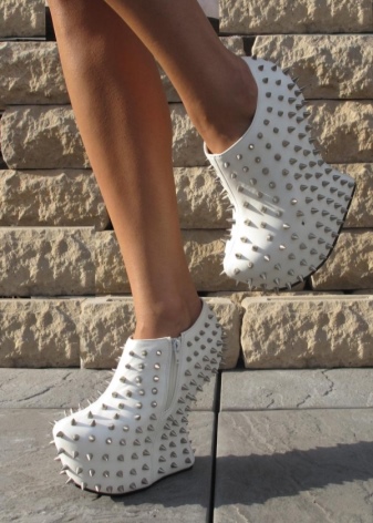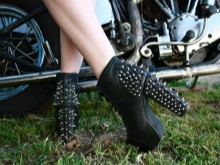 In order for the image to be harmonious and not vulgar, a balance should be observed: the volume of spikes should be correlated with the color of the shoe, as well as the height of the platform or heel. It is best when in lace-up ankle boots the decor is located on the back of the product.