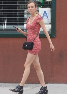 - Lush dresses of pastel colors will help to add femininity. A too short model will upset the proportions of the figure, so it is better to choose styles with an average length. A leather jacket or a leather jacket will be a wonderful addition to this kit.