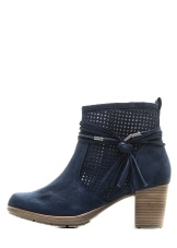 Blue ankle boots vary in material and heel features.