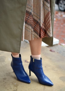 Also, blue ankle boots are summer. They differ from the usual ones with an open nose or perforation.