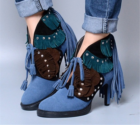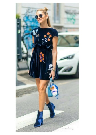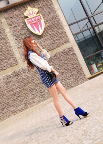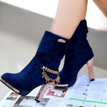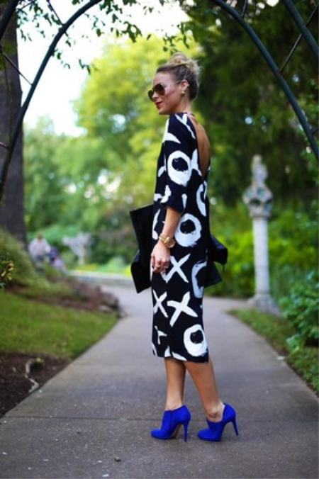 The most spectacular look is blue ankle boots and a dress. It may seem complete bad taste at first, but it is not. If the dress is in tone with the ankle boots and the shoes have beautiful iridescent rhinestones, then your image will undoubtedly be the best of the best.