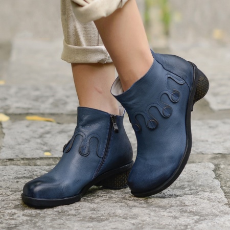 When buying blue ankle boots you need to pay attention to the material.