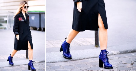 Blue ankle boots are a bold choice. This color can compete in its originality and extravagance except that with black. It looks great with things of a contrasting color.