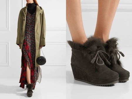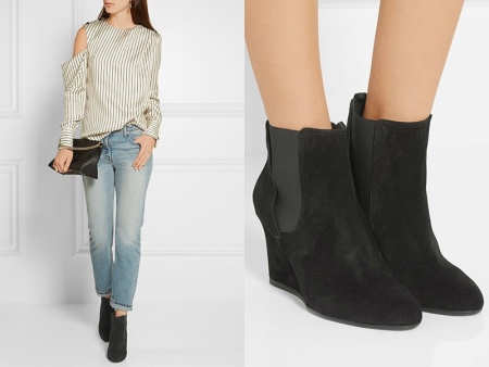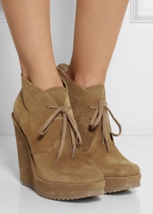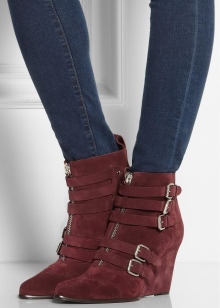 Suede wedge ankle boots are perfect for every day. Although they require special care, they look very impressive, and a comfortable wedge heel provides complete comfort in wearing.