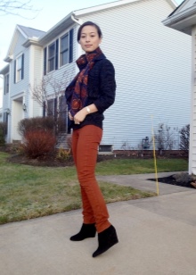 In the first case, they will need to be supplemented with a shirt and a strict jacket, and in the second - with a top and an asymmetric cardigan. Do not forget to tie a voluminous scarf or collar around your neck.
